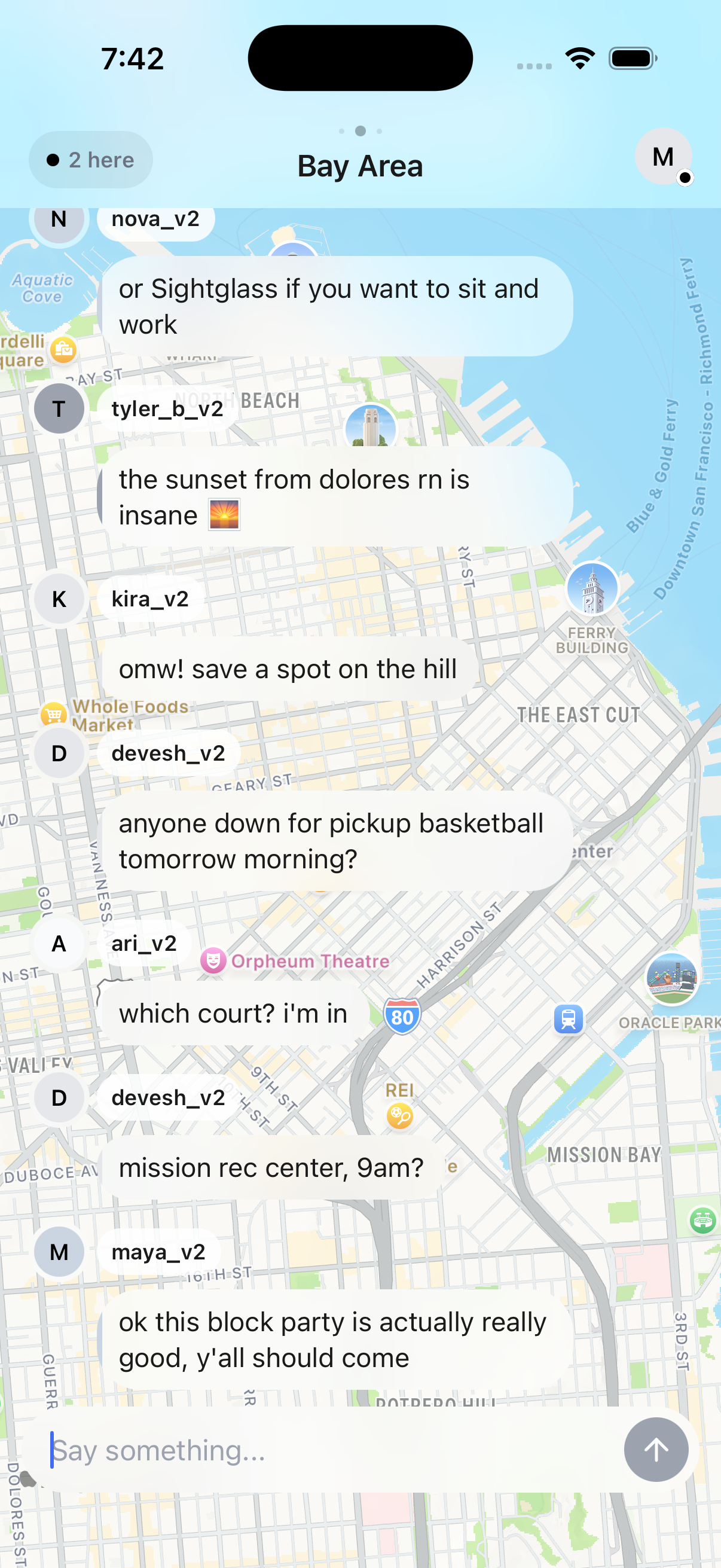 Open the app and immediately see what people nearby are talking about, from pick-up games to block parties.